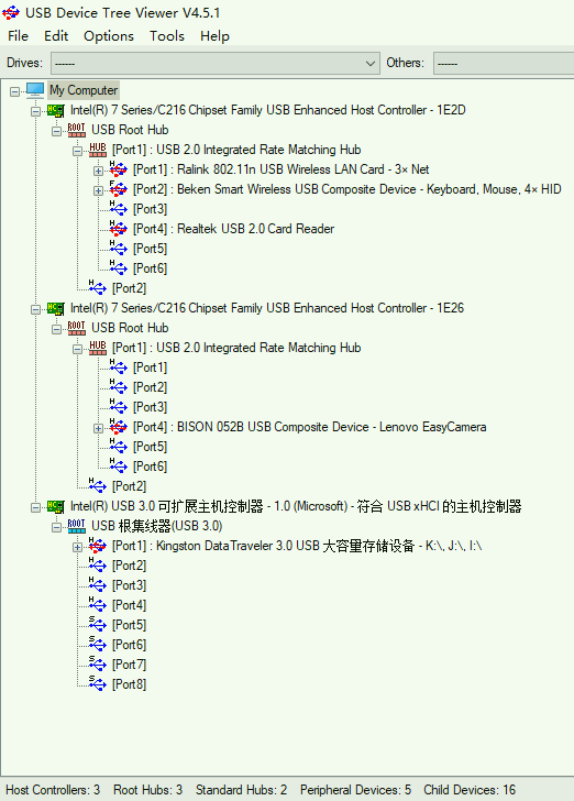 🔹 USB Device Tree Viewer(免费、官方推荐)