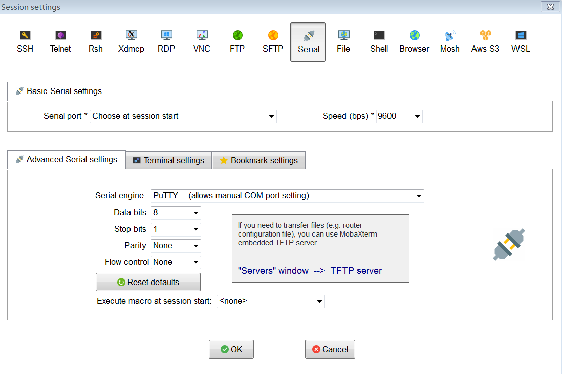 - 核对通信参数,确认是否配置正确。(此处使用第三方软件MobaXterm为例进行介绍)