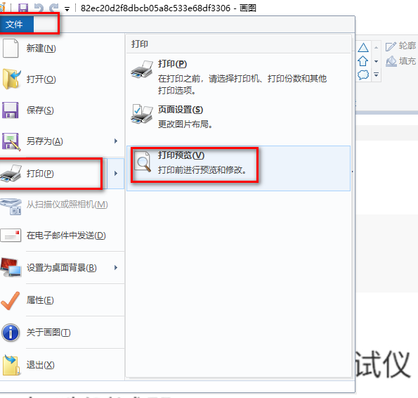 2、在画图中打开 文件 -> 打印 ->打印预览;