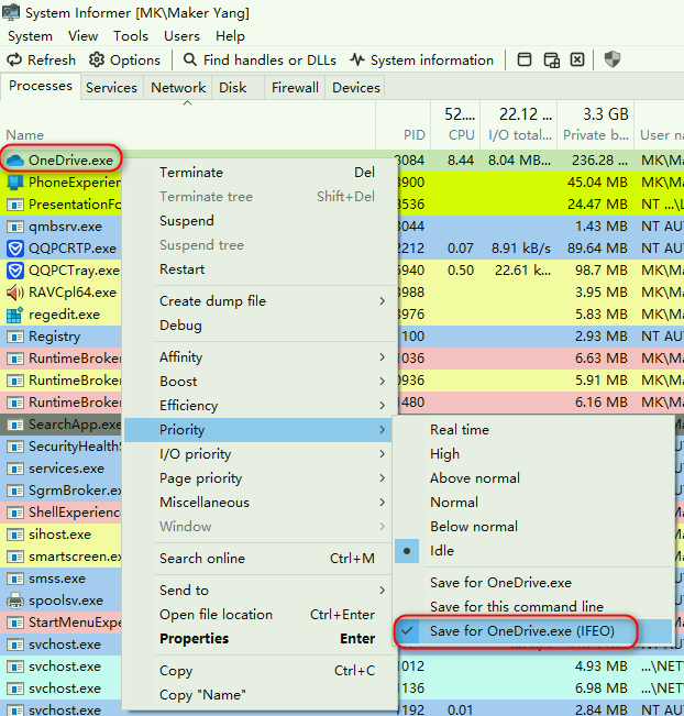 System Informer 是 Process Hacker 的正式继任者 可以强制结束进程与设置进程优先级与进程网络使用情况
