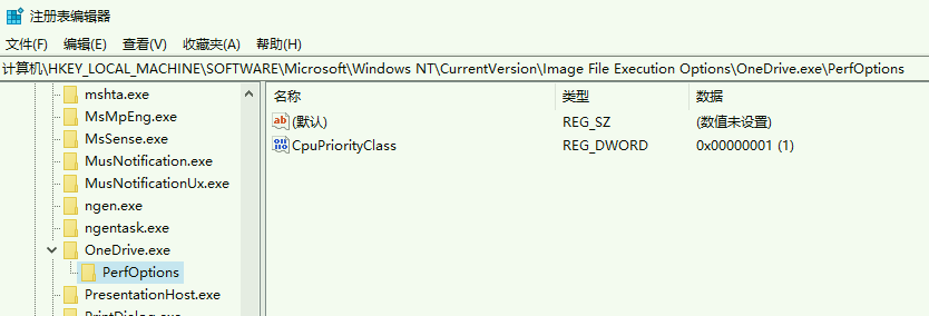 HKEY_LOCAL_MACHINE\SOFTWARE\Microsoft\Windows NT\CurrentVersion\Image File Execution Options\OneDrive.exe\PerfOptions